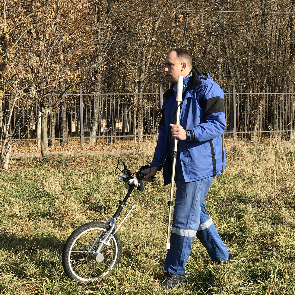 It is designed for non-contact magnetometric diagnostics of gas- and oil-pipelines being buried at the depth of 2-3 m. The scanning device is manufactured as a telescopic bar. It is mounted on the road measuring wheel. At the same time the scanning device can be used both with the measuring wheel and independently.