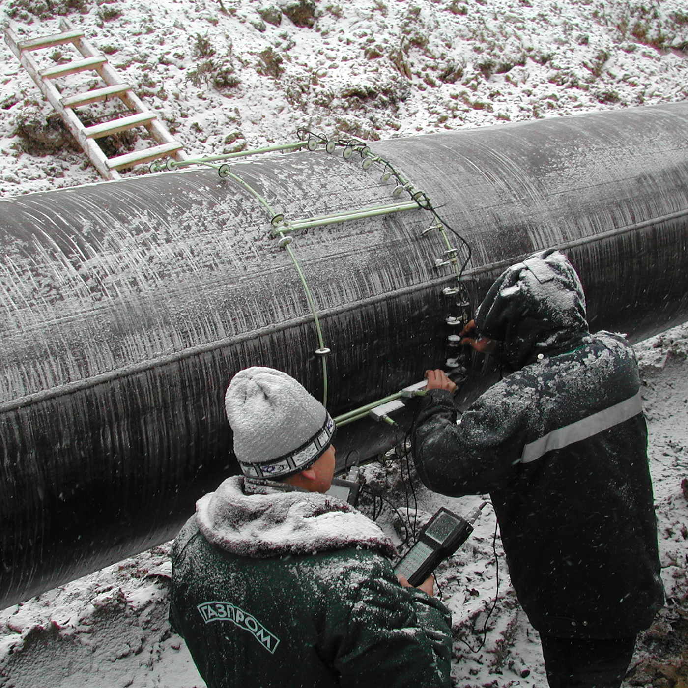 The scanning device covers the entire pipeline perimeter and ensures 100% inspection of the entire pipeline surface.