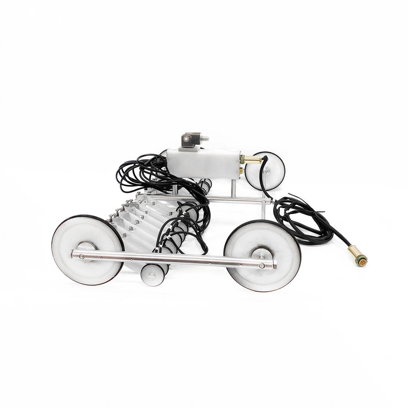 Twelve-channel scanning device is designed for inspection of pipes, shaft and other cylindrical products in diameter from 500 up to 1420 mm. Inspection may be carried out by several generatrixes of the pipes or on surface areas.
