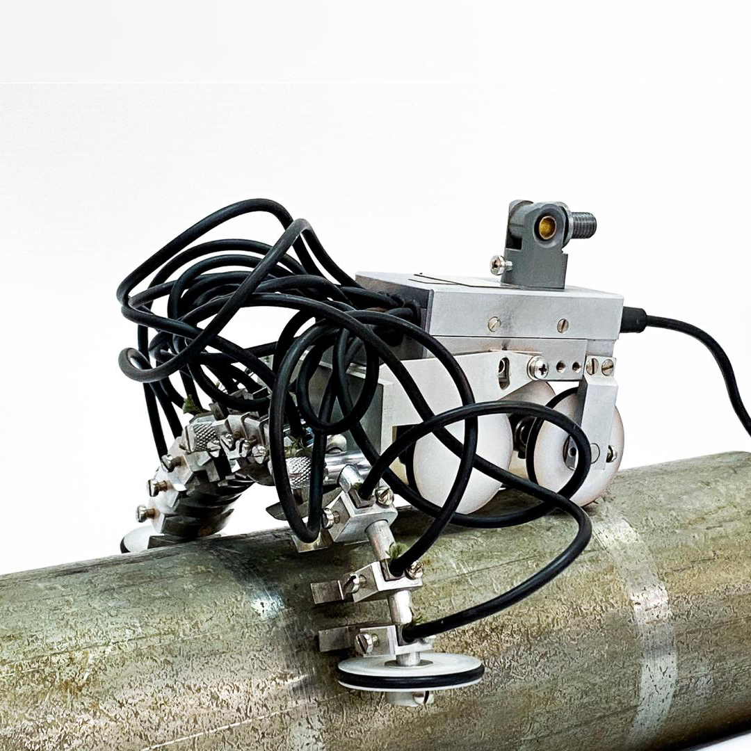 The scanning device with 12 flux-gate transducers for measurement of the normal magnetic field component is designed for large-diameter pipelines, vessels and apparatuses shells inspection. It is manufactured on the basis of the Type 1 scanning device. The extended distance between the flux-gate transducers allows increasing the speed of large-diameter pipelines, vessels and apparatuses shells inspection.
