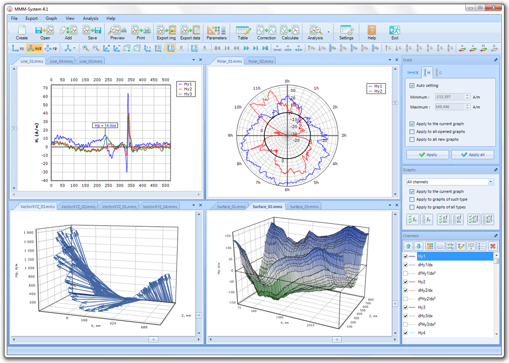 "MMM-System 4" is a specialized program for processing of the data on equipment and structures stress-strain state using the metal magnetic memory method. This program is designed for processing and analysis of the results of diagnostics by the MMM method and preparation of reports.